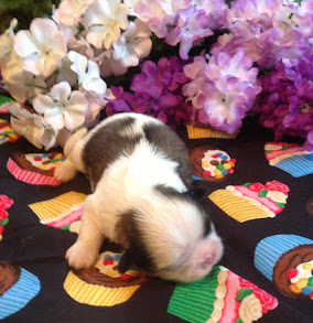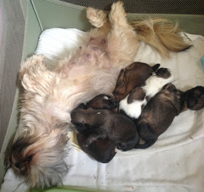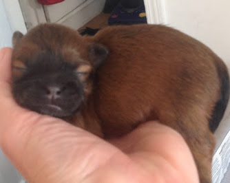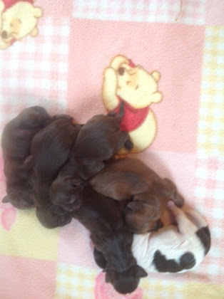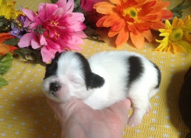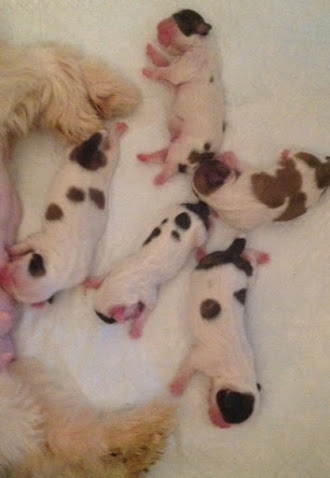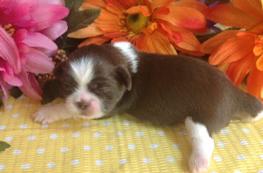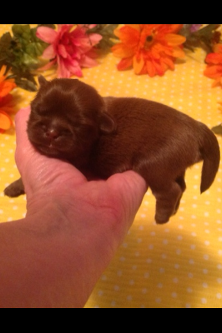 Goldie had this litter on April 20th, It consists of 2 females and 2 males gold and red w white markings and 1 gold, red, and white parti female.' They are 850 full AKC, 700 pet price They have champion lines