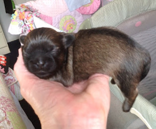 He is a teacup Yorkie male. He is 3.7 lbs and is full grown. He is 600 full AKC. All shots and wormings are up to date. Call or text 330-550-3507 for more info.