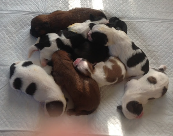 Most of these beautiful pups are available Contact me for more info There are Chocolate Livers, Solid Black, Black and white, Brindle and white, Chocolate and white, Red, Red with black mask, Gold. Some have chamion lines. AKC and CKC registration available .